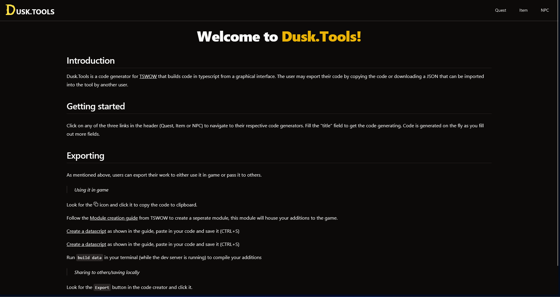 A GUI for code generation for TSWoW